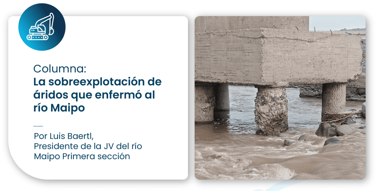 Opini贸n del presidente de la JVRM publicada en Ciper Chile y que aborda las graves consecuencias que tienen los proyectos de extracci贸n de 谩ridos en el lecho del r铆o. Afirma que, desde el punto de vista sedimentol贸gico, el Maipo es un r铆o enfermo, cuyo balance est谩 alterado, y alerta que autorizar una nueva actividad extractiva puede perfectamente empeorar el ya deteriorado estado de su cauce.